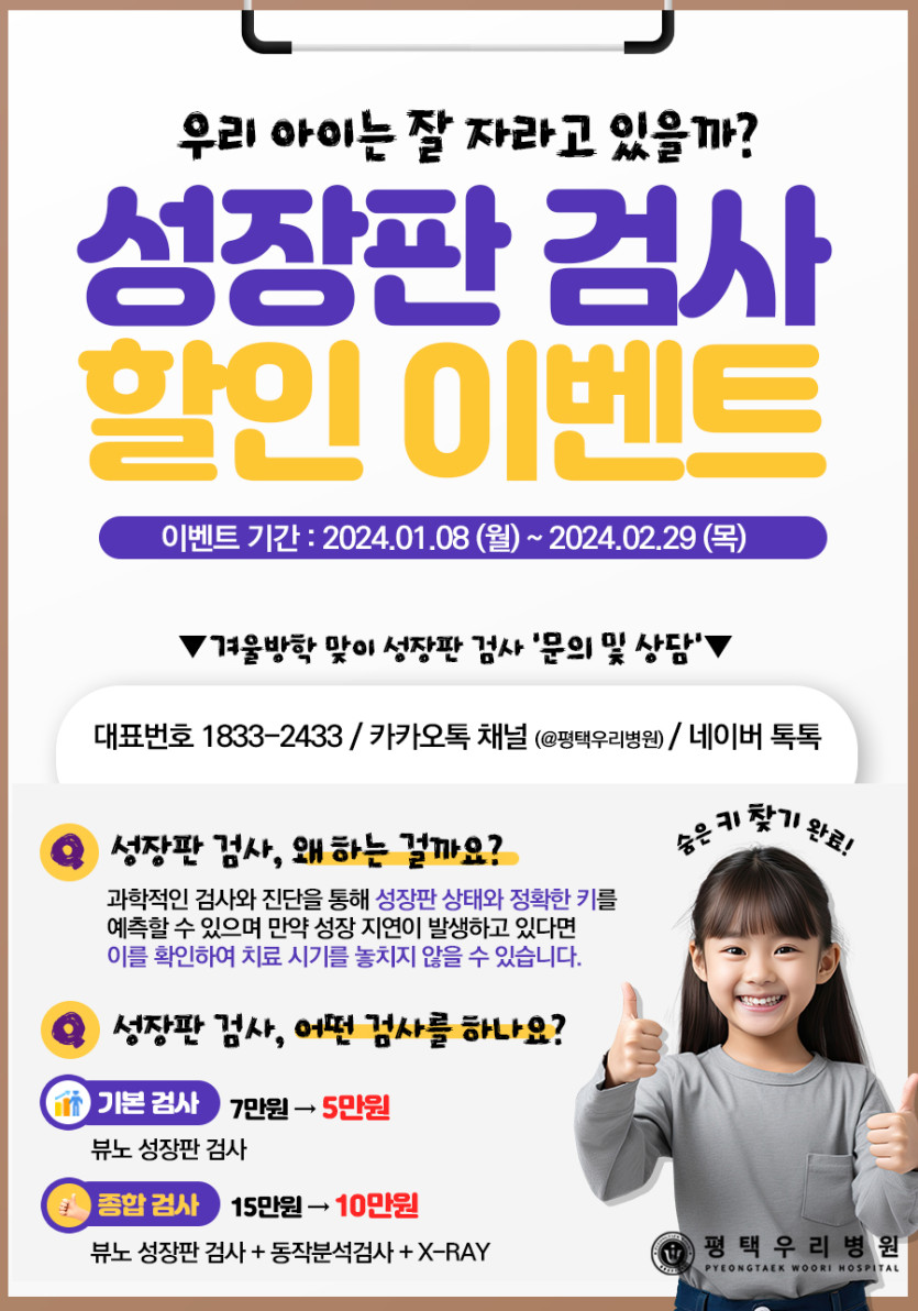 우리 아이는 잘 자라고 있을까? 겨울방학맞이 <성장판 검사 할인 이벤트>